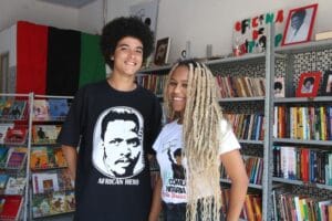 À frente do espaço, um casal de jovens, Tatiane Ribeiro, de 27 anos, e Kairu Kijani, de 26 anos. A iniciativa de abrir a biblioteca, em 2019, como um braço do movimento negro, deu certo. O projeto teve sucesso e se expandiu, a ponto de abrirem turmas de balé infantil em outro local, no bairro Cidade Tiradentes, na Rua Faustino Lopes.